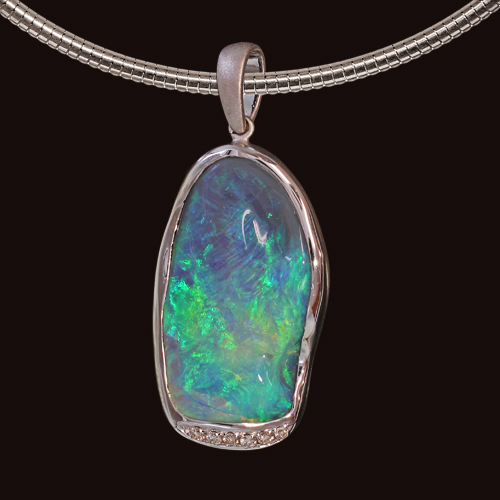Australian Crystal Opal in 18K White Gold Pendant