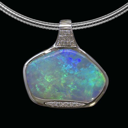 Kristallopal und Brillianten in Weißgold-Anhänger
