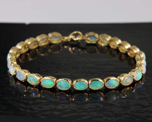 Armband aus 750er Gelbgold mit blaugrünen australischen Kristallopalen