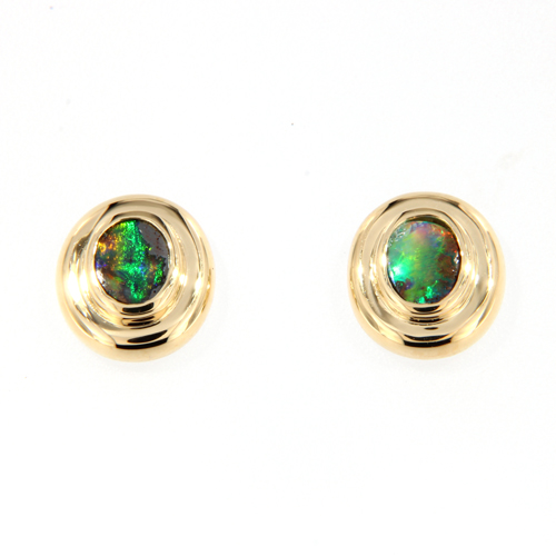 Kleine Ovale Boulderopal-Ohrstecker in 750er Gelbgold
