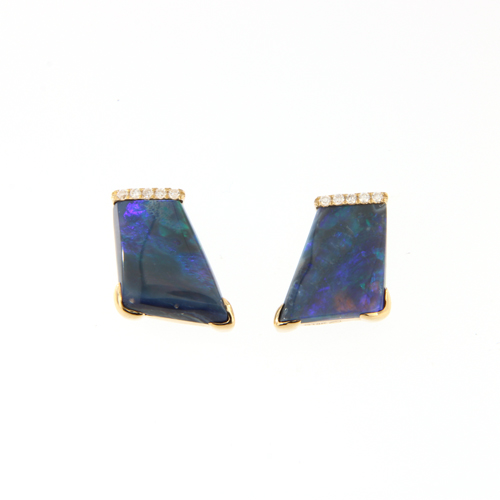 Schwarzopalen und Brillianten in 750er Gelbgold Ohrsteckern