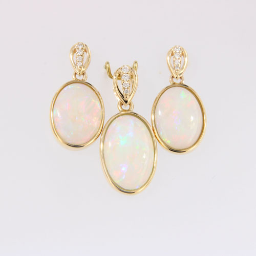 Ovale Opale und Brillanten in 585er Gold Ohrringe und Anhänger im Set