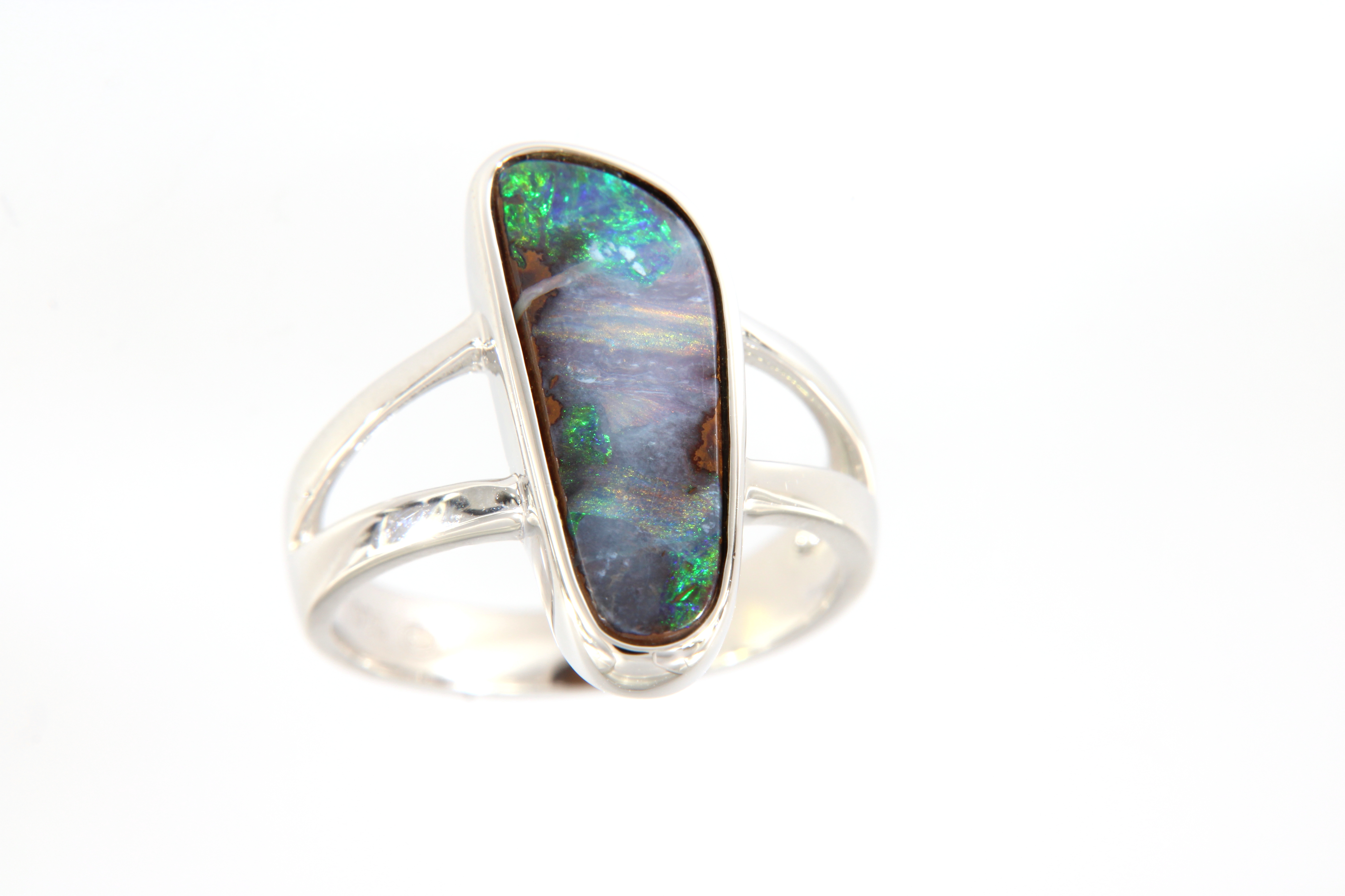 Boulderopal in Split-Band-Ring aus Sterlingsilber